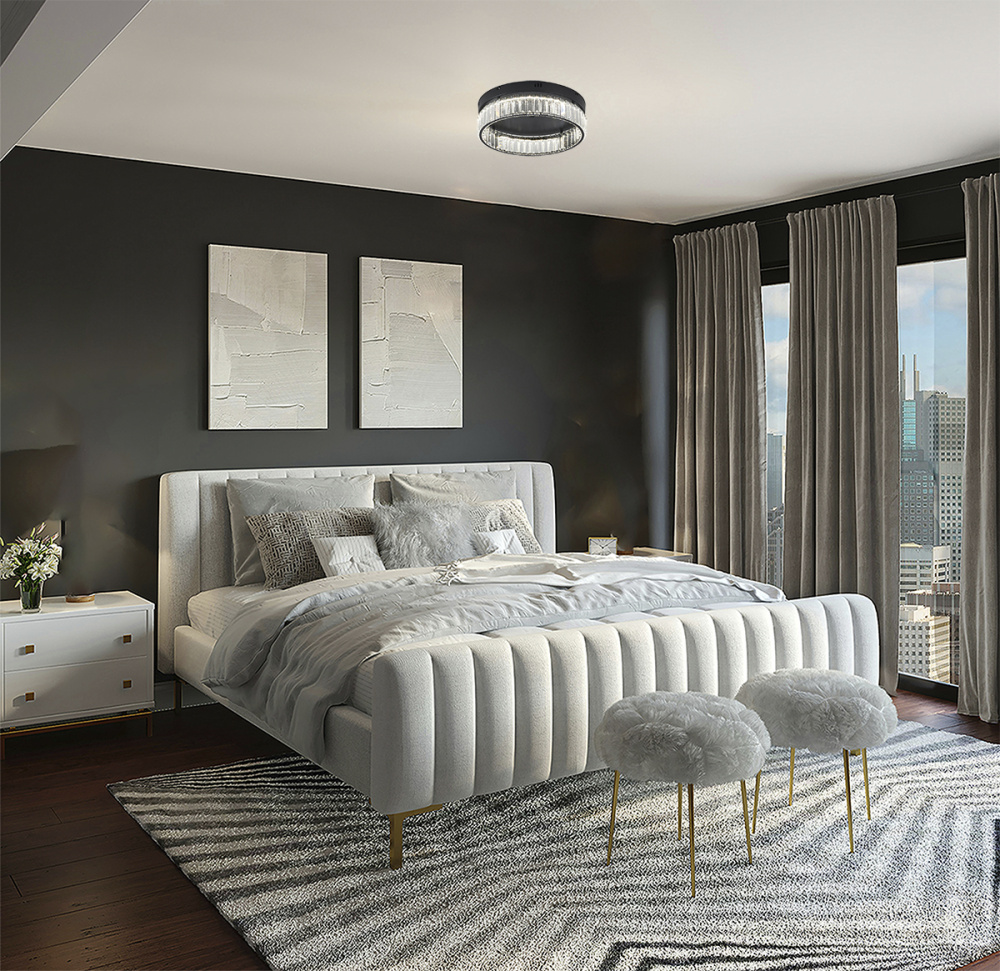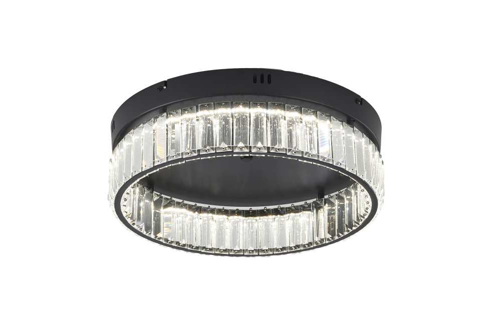 This transitional LED flush mount is stunning with a black steel frame decked with strands of faceted clear crystal shades, and the crystals further highlight the uniqueness of this chandelier. When you hang this modern LED chandelier in your home, you will easily be surprised by the magnificent light reflected by the crystal accents. This fixture showcase opulence and elegance and is the perfect modern accent to any space. If you are also looking for a light source for your living room, hallway, bedroom, kitchen, or dinning room, this LED flush mount can easily fit into your modern home decor.
