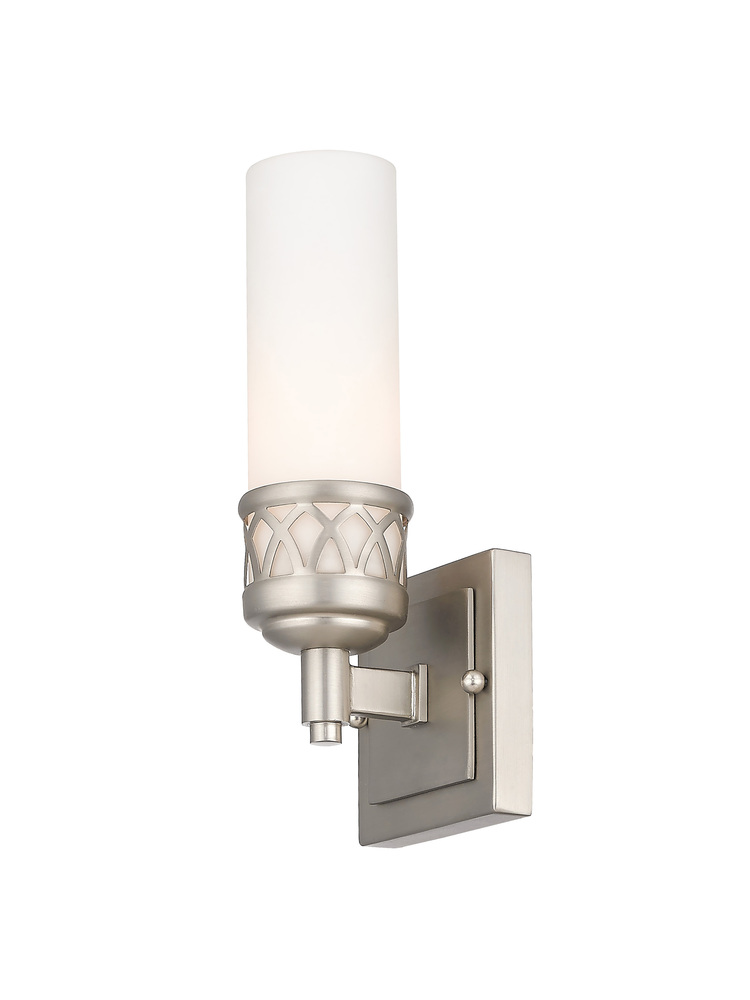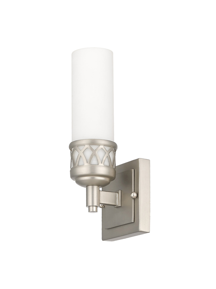Featuring A Smooth Cylindrical Hand Blown Satin Opal White Glass Shade For A Discerning Touch, This Contemporary Bath Fixture Features A Round Framing And Classic Squared Backplate. Finished In An On-Trend Brushed Nickel Hue, It'S A Definitive Look For Contemporary And Classic Looks Alike.