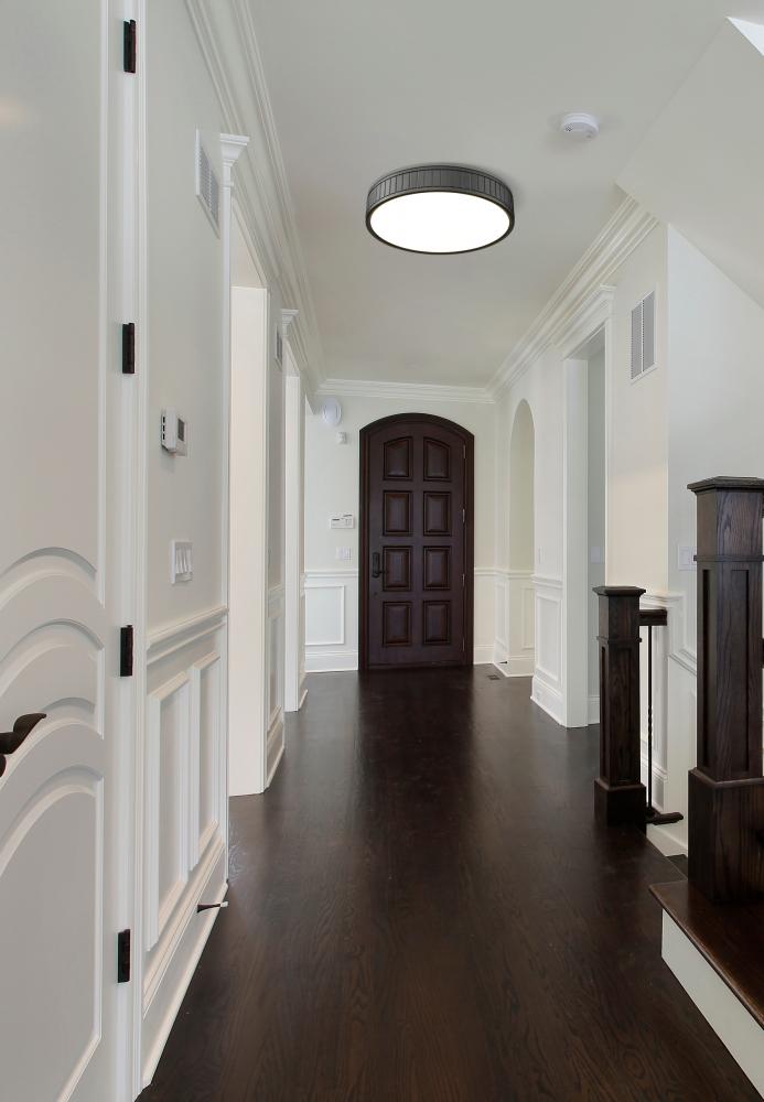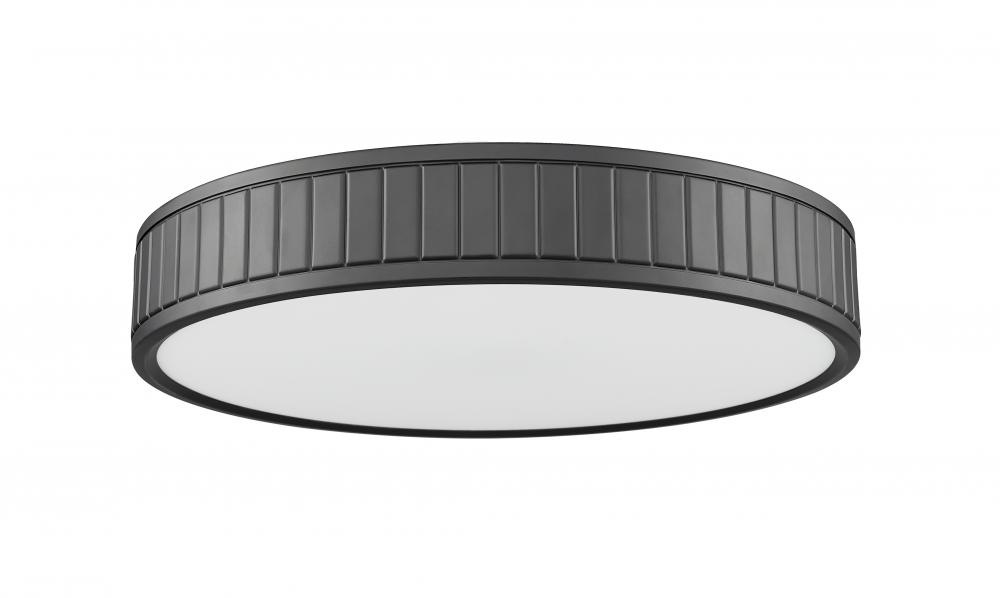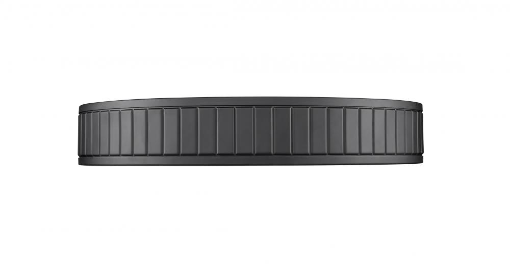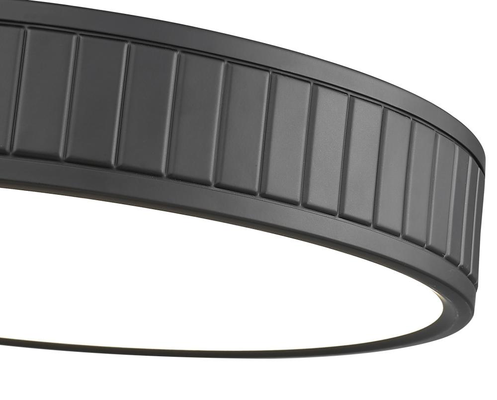 Capture a low-key aesthetic to send ambient lighting from ceiling to floor. Steel construction forms a ring canopy with a dramatic matte black finish and vertical slats nestling a frosted acrylic diffuser that sends energy-efficient, optional and changeable white-color values to light up a modern kitchen, dining room, or foyer.