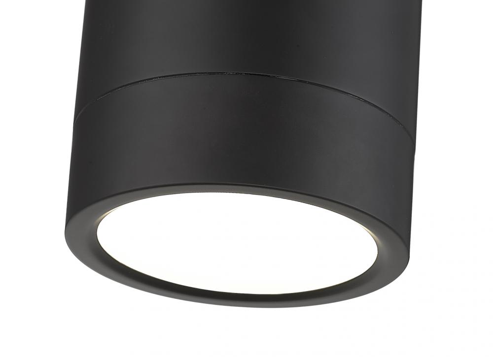 A dramatic matte black finish steel cylinder calls attention to this modern one-light flush mount ceiling light, a bold fixture that turns minimalism into pure style. Steel construction with a frosted diffuser team up to send dimmable illumination, adding options for customizing ideal white color values.