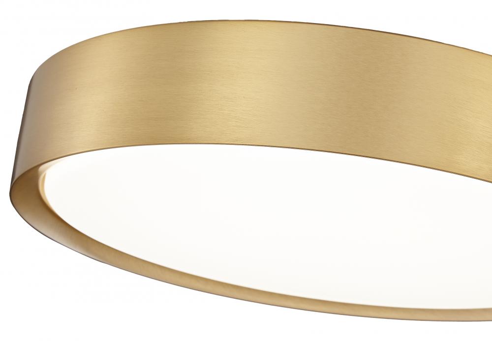 Enjoy the warmth of a modern gold finish in this modern one-light flush mount ceiling light. A timeless presentation, it pairs a steel shade with a frosted acrylic diffuser, delivering inviting illumination to a seating group, bedroom, or den. Its clean, refined style is complemented with the energy efficiency of integrated LED lights for a truly modern presentation.