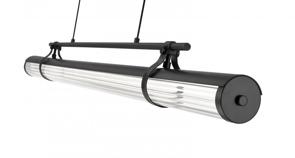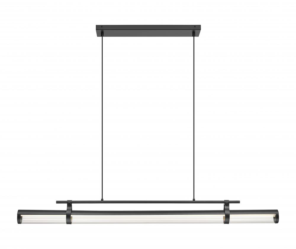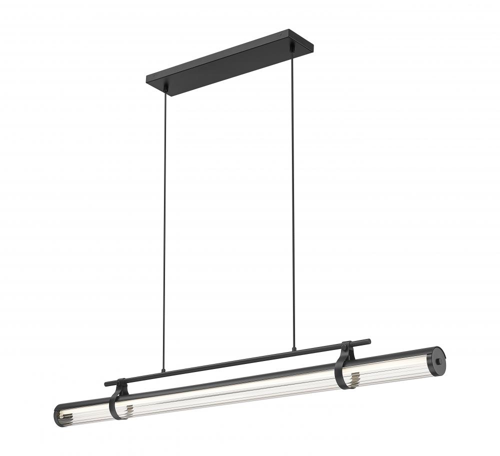 Tempting industrial inspiration highlights the design of this one-light LED linear chandelier delivering a stark contrast of matte black metal framing and a delicate clear reeded glass cylinder shade. Dimmable illumination is perfect for mood lighting as this fixture is rotatable to perfect lighting direction, and variable in light color levels.
