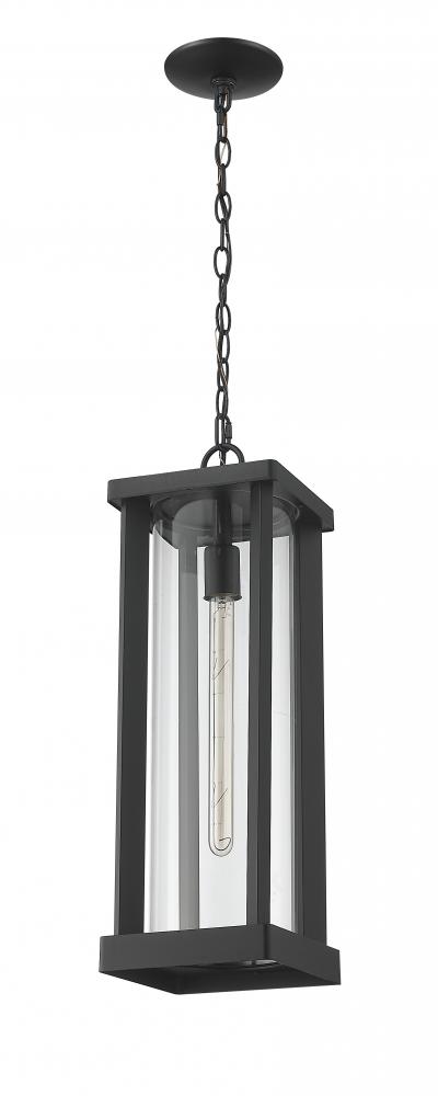 With a modern flair, this outdoor ceiling fixture from the Glenwood collection features a dark black finished frame hung by a drop mount chain. Perfectly suited for a more contemporary style home, this outdoor lighting fixture works nicely hung inside a covered portico or porch entryway. With a tube-like, clear glass cylinder sheathing the bulb and braced between a sleek aluminum lantern, this chain mount ceiling fixture adds a striking, yet humble look to greet you as you enter a space.