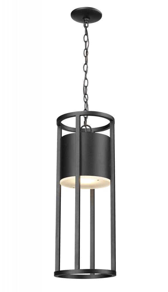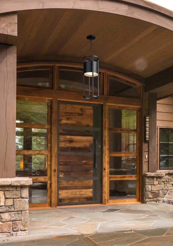 This one-light outdoor hanging light from the Luca series adds a new twist to modern lighting for patio and deck spaces. Embrace an openwork cylinder frame and outer ring shade made of black aluminum with an etched glass diffuser. LED lighting offers energy efficiency to embellish its value.