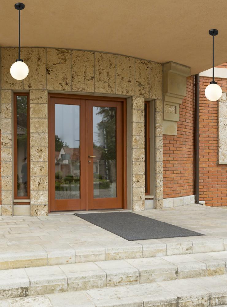 Add a hint of old village charm with updated design elements to an exterior space. The Laurent one-light outdoor pendant delivers a festive silhouette with a classically whimsical aesthetic. A single opal glass bulb and straight-form down rod and accents constructed of sleek black aluminum team up to create a compelling look.