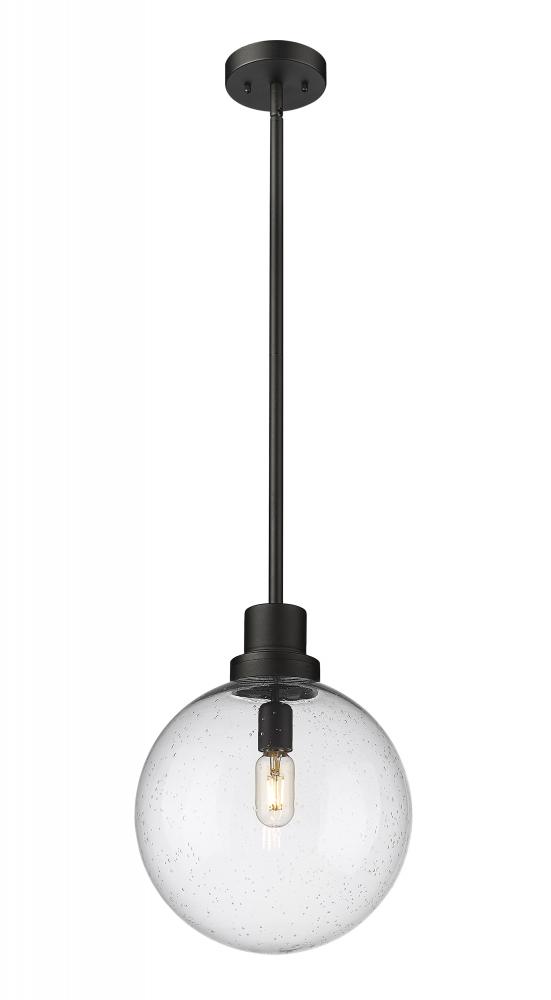 This one-light outdoor pendant from the Laurent collection reinforces a simple yet stylish Mid-Century Modern motif. Light up a deck or patio space with this cheery fixture reflecting a hint of storied village nautical attitude. Suspending from a black finish aluminum canopy and down rod, its chic, delicate clear seedy glass globe delivers the ultimate in sophistication.