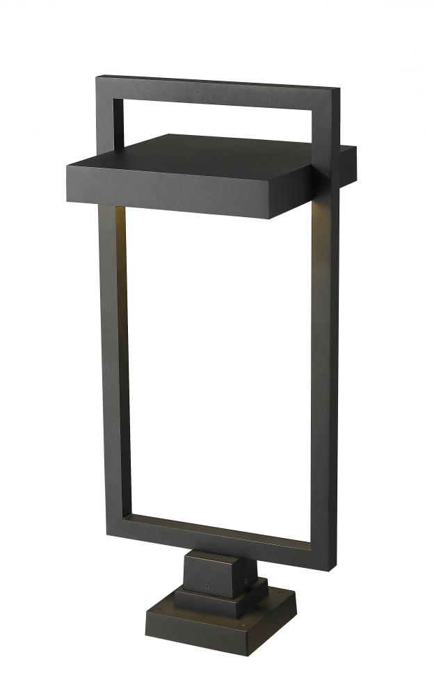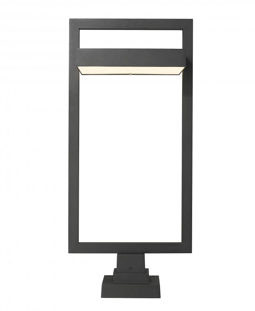A cutting-edge solution for illuminating your contemporary patio, deck or garden area, this one-light outdoor pier mounted fixture delivers chic minimalism with its angular bold black finish aluminum frame. A sand blast finish white glass shade uses LED-integrated technology to provide a strong, energy-efficient glow to light up evenings outdoors. The light is supported by a sturdy two-tiered base.