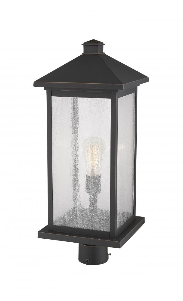 Set a sophisticated scene with this one-light lantern post light, featuring clear seeded glass shades. With a sleek frame, the rich outdoor rubbed bronze finish looks stunning in gardens and on porches.