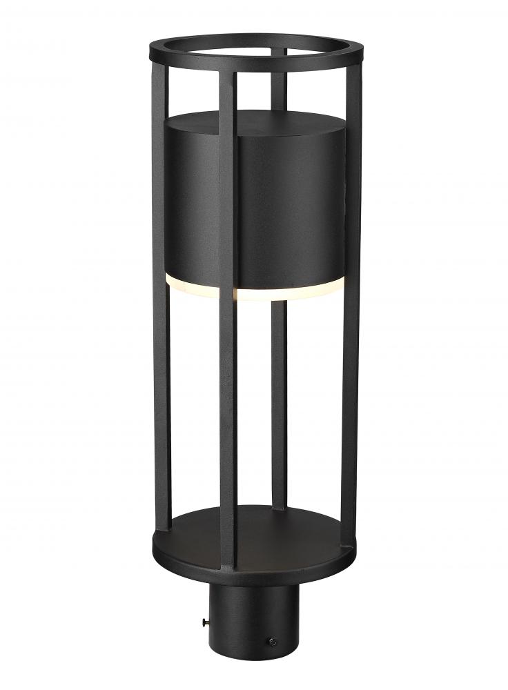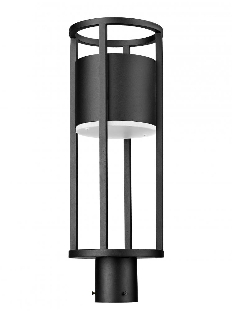 Raise the standard in an exterior space with a fixture that incorporates industrial style with geometry. This one-light outdoor post mount fixture from the Luca series offers an openwork cylinder frame featuring black aluminum with an etched glass diffuser. LED lighting offers energy efficiency to embellish its value.