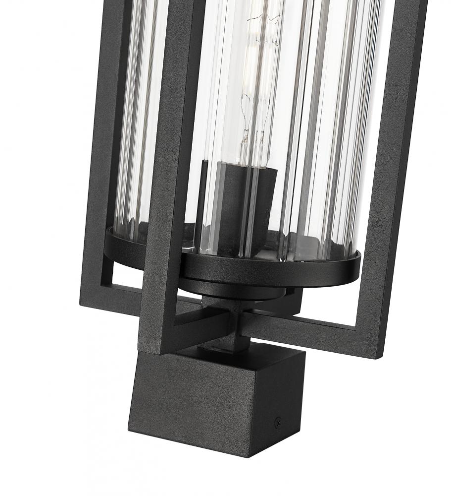 Geometric silhouetting of openwork aluminum steals the show in a modern one-light outdoor post mount fixture perfect for infusing sophisticated style. With a Coastal black finish, its smooth look magnifies through dimmable light flowing through a ribbed glass shade.