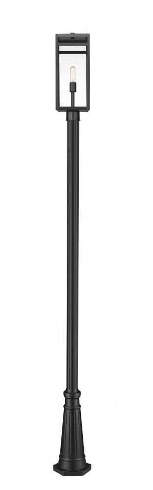 Joining the trend of mixed motif design styles, the Nuri one-light outdoor post mounted fixture joins old and new with a clean, crisp linear frame and a body ending in a delicately curved base. This fixture presents a commanding presence as a source of ambient lighting outside a residential or commercial structure. With clear glass panels shielded by linear frame elements, an inner bulb mount is in full view.