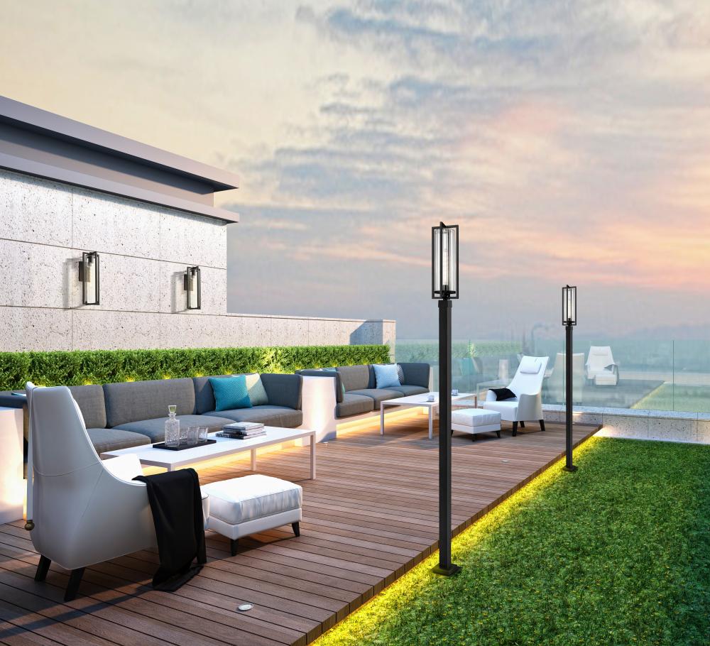 Turn an exterior space into a design haven with a modern one-light outdoor post-mounted light. Gorgeous Coastal black painted aluminum construction blends with a dimensional frame, adding a powerful style scheme. A clear ribbed glass shade filters light which is dimmable to achieve custom lighting effects.
