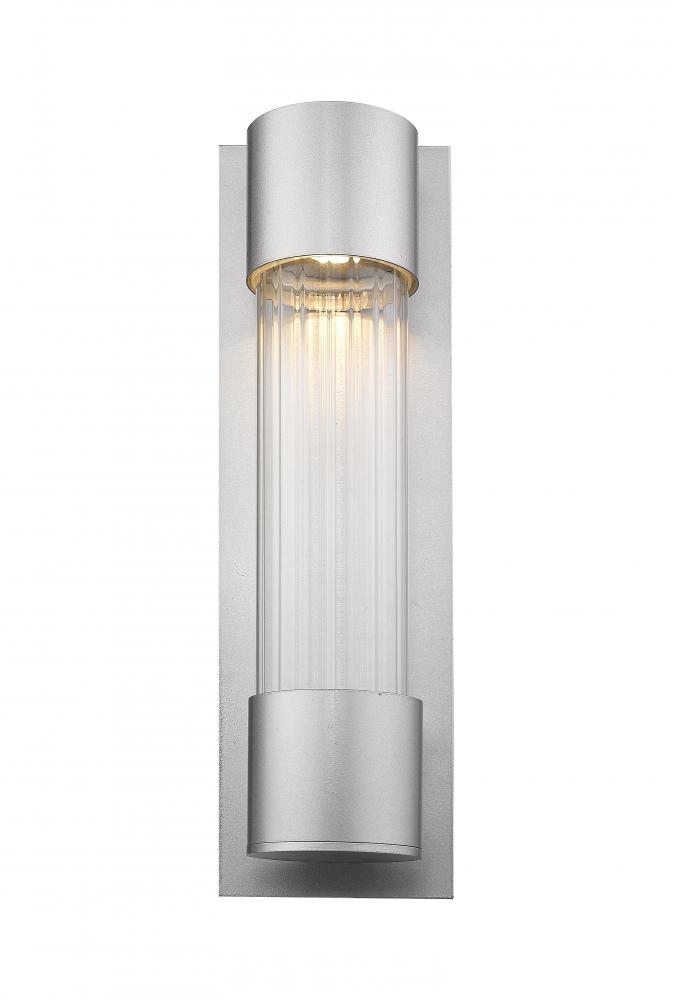 Sleek in silver, this small wall sconce enhances contemporary decor with a cool, crisp look. Clear optic glass ensures true illumination while a cylinder silhouette and bold end caps catch the eye.