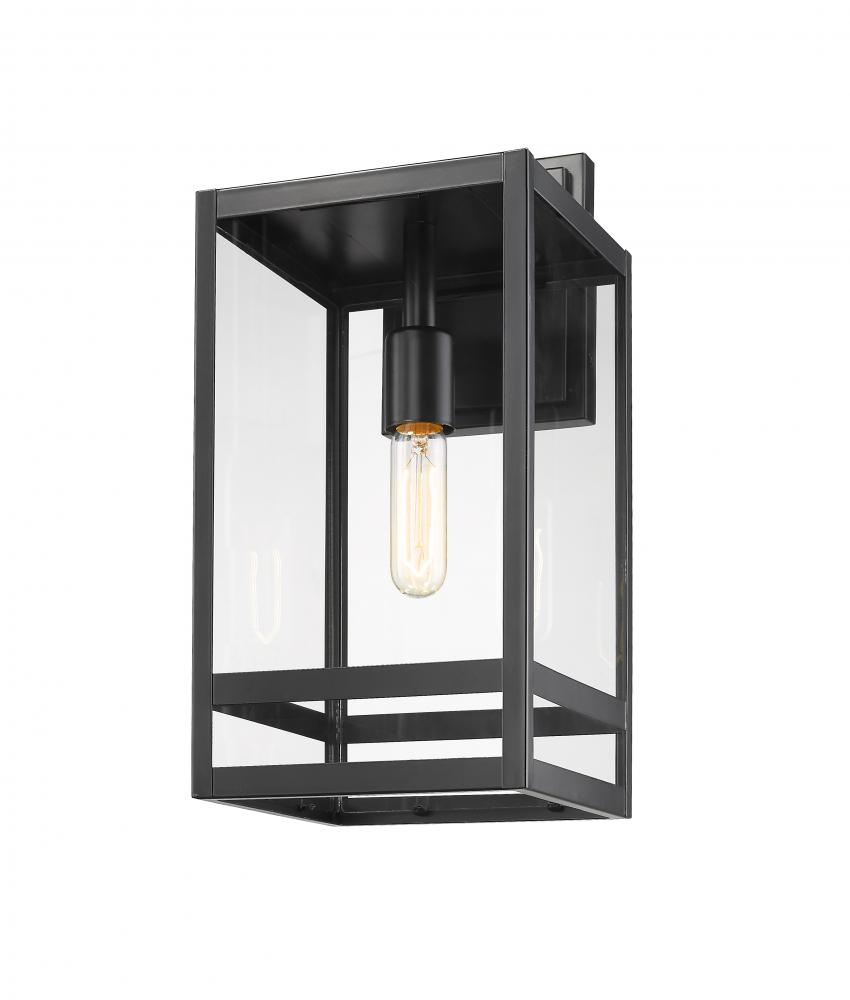 Perfect proportions reflect a crisp linear silhouette and design turning the Nuri one-light outdoor wall sconce into a tasteful d?cor element repurposed for exterior spaces. Embellish a structure or home space with this elegant light featuring construction of black finish steel in a pieced and layered format. Clear glass panels keep the focus on dramatic geometric lines.