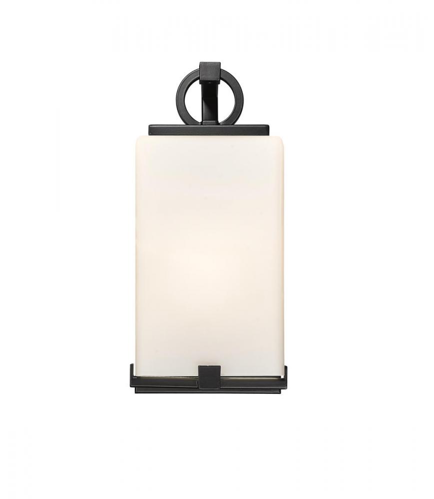 A coastal outdoor one-light wall sconce in a black finish is a perfect accent for your porch or patio. Steel construction enhances the appearance of the white opal shade.
