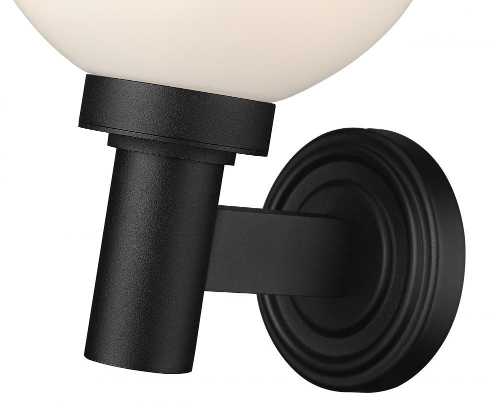 Mid-Century Modern simplicity takes a whimsical turn in the design of a fixture created for pure artistry. From the Laurent collection comes a one-light outdoor wall sconce offering a retro-influenced motif and a dose of Art Deco attitude. A cheery opal white glass globe shade and cylindrical black finish aluminum frame gives this wall sconce eye-catching palette contrast.