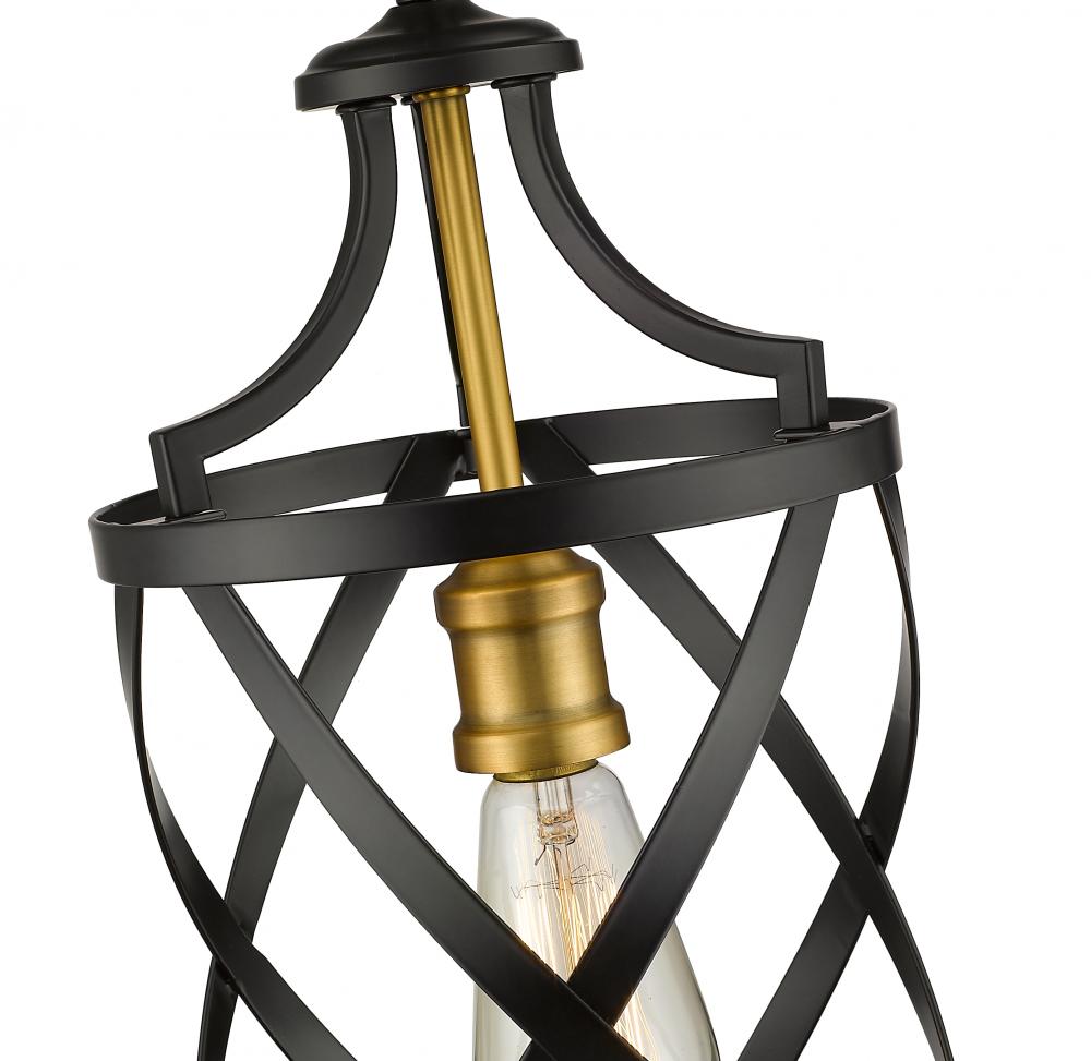 Enhance the vibrancy of your favorite space with the stylish design of this two-tone one-light mini pendant. Its crafted with a matte black and olde brass finish with the single light housed within a round design adorned with a series of overlapping X-cross patterns. This light brings a dynamic element to any kitchen, bedroom, dining room, or living room.
