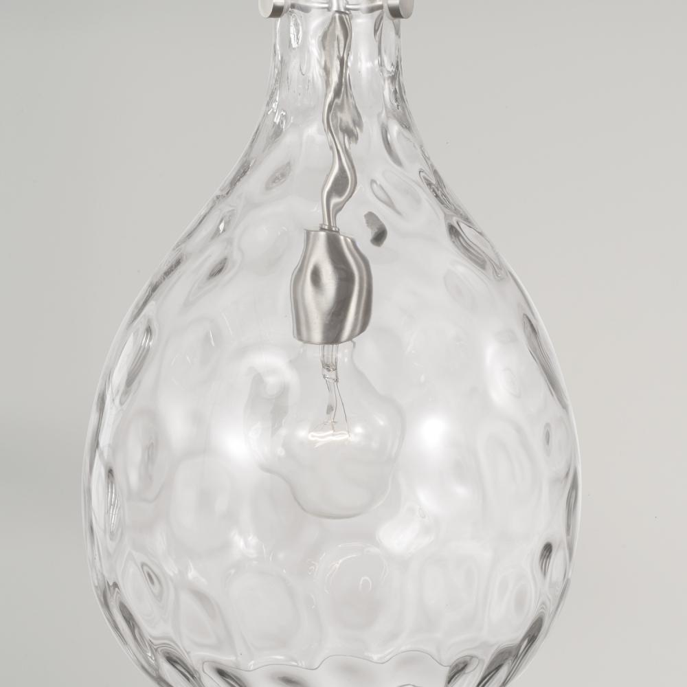 9.75"W x 18"H 1-Light Pendant in Brushed Nickel with Clear Teardrop Water Glass