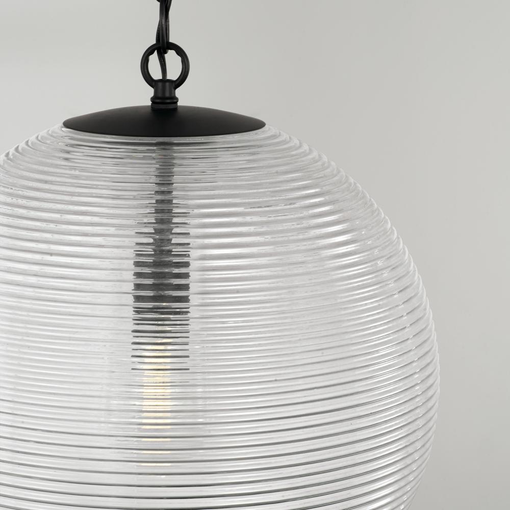 15"W x 16.75"H 1-Light Globe Pendant in Matte Black with Clear Ribbed Glass