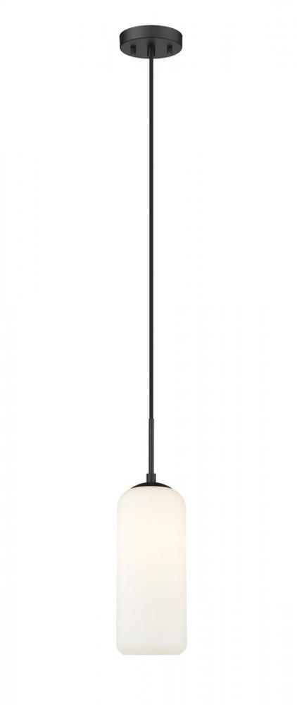 Light up a casual space with a fixture delivering a look that?s easy on the eyes and modern with a soft asterisk. The Monty single-light pendant creates artistic boosts with a curved opal glass shade affixed to a matte black finish steel holder and canopy. A charming braided black cord adds to a light aesthetic, making this fixture a great option for custom foyers, dining spaces, and main living areas.