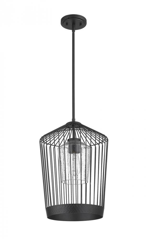 Bring an urban allure to your kitchen with a pendant light in matte black. This light provides a warm, modern glow behind the cylindrical clear seeded glass shade for an incredible ambiance.