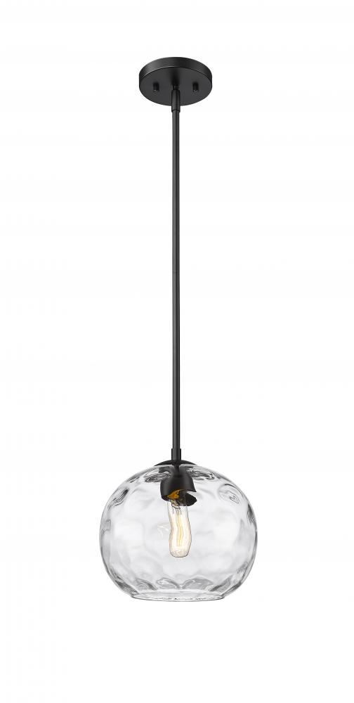 Define your modern space with the eye-catching, streamlined presence of this one-light pendant. Rounded shades are made from clear, water-textured glass, suspended from a sleek steel frame with a matte black finish. Your contemporary dining room or family space gets an instant boost with this sophisticated fixture.