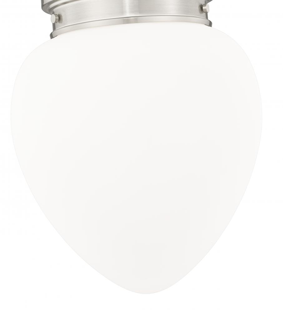 Schoolhouse inspired glass and a chic silhouette highlight a modern one-light pendant. Its timeless brushed nickel finish complements in your kitchen or dining room, with the versatility to blend beautifully in a bedroom or den. Its teardrop-style shade is crafted from matte, etched opal glass to deliver soft, diffused illumination in any setting.