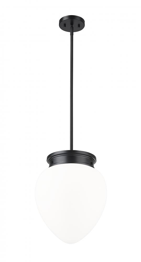 Schoolhouse inspired glass and a chic silhouette highlight a modern one-light pendant. Its timeless matte black finish complements in your kitchen or dining room, with the versatility to blend beautifully in a bedroom or den. Its teardrop-style shade is crafted from matte, etched opal glass to deliver soft, diffused illumination in any setting.