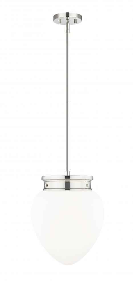 Schoolhouse inspired glass and a chic silhouette highlight a modern one-light pendant. Its timeless polished nickel finish complements in your kitchen or dining room, with the versatility to blend beautifully in a bedroom or den. Its teardrop-style shade is crafted from matte, etched opal glass to deliver soft, diffused illumination in any setting.