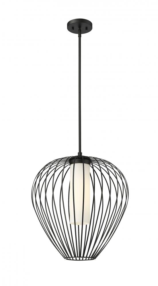 Slender spokes curve and taper to create the bulbous profile of a modern one-light pendant. Striking over a kitchen island or living room, it boasts a striking matte black finish paired with a white opal glass inner diffuser, creating inviting, true illumination and wonderful ambiance.