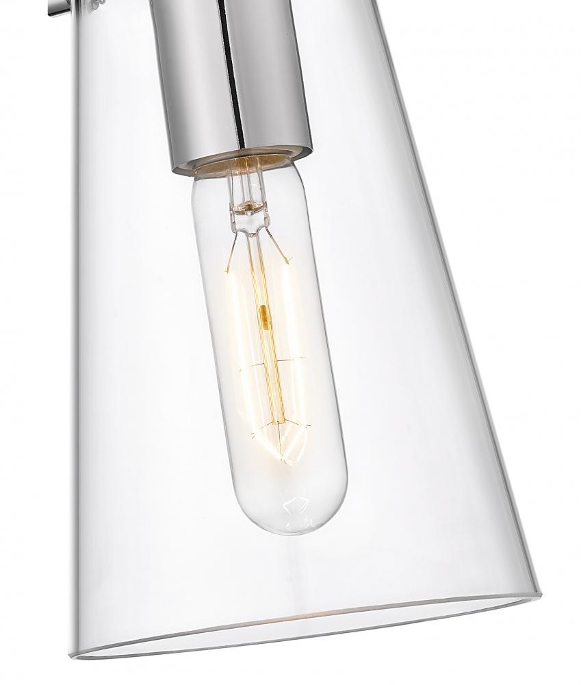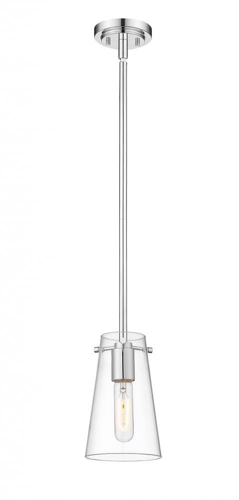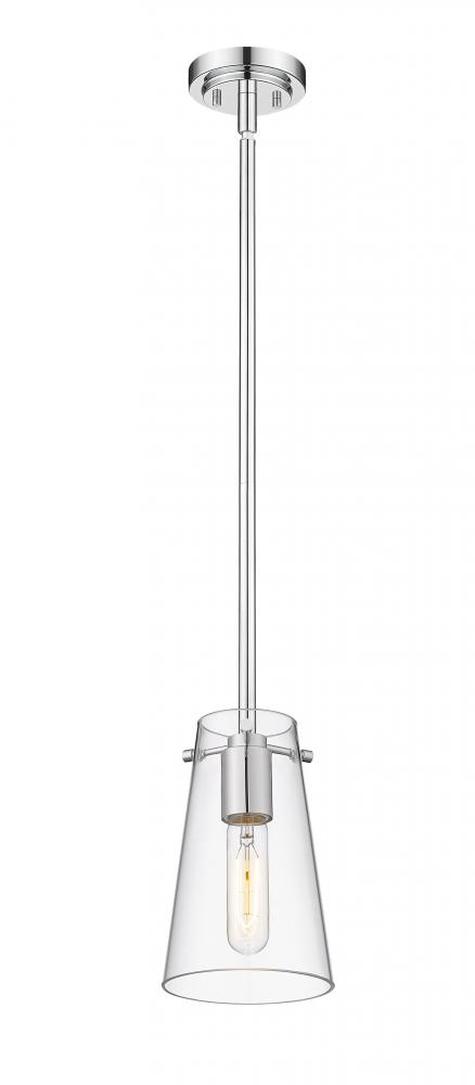 Infused with modern appeal, this one-light pendant pairs a chic chrome finish with a minimalist silhouette that clears the way for beautiful illumination. A conical shade of clear glass refracts light for bright lighting over a kitchen island or in your living area. Its simplicity is a highlight, perfect for a contemporary space that embraces understated refinement.