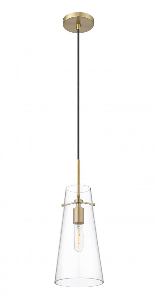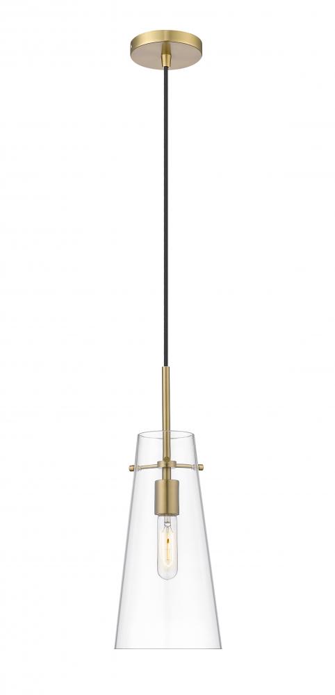 An elongated cone of clear glass sets the tone for a modern one-light pendant. Infused with minimalist elegance, it showcases a simple, sleek housing and suspension for a crisp, clean look and feel in your kitchen, living room or powder room. A warm modern gold finish is crisp and timeless, setting the tone for surrounding decor.