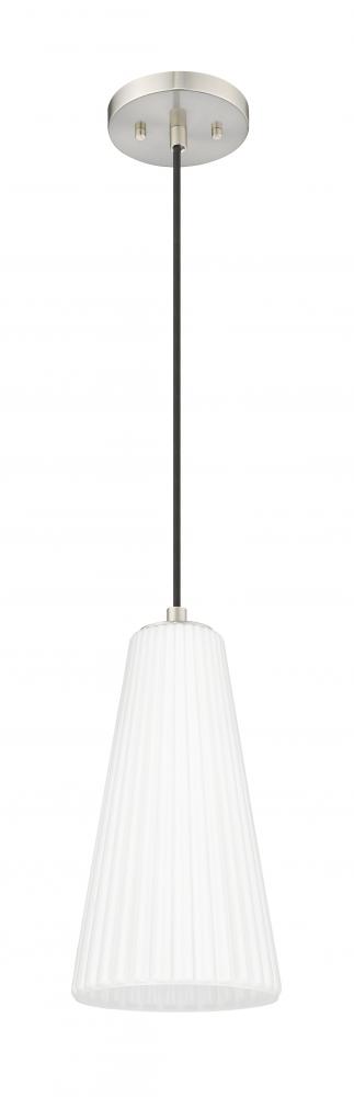 Fluted white glass creates a chic, elongated silhouette for this modern one-light pendant. From the Farrell collection, its a distinctive design with the understated flair that complements in virtually any refined space. Its soothing sophisticate is paired with a brushed nickel finish, offering a gleaming touch to the surrounding decor.