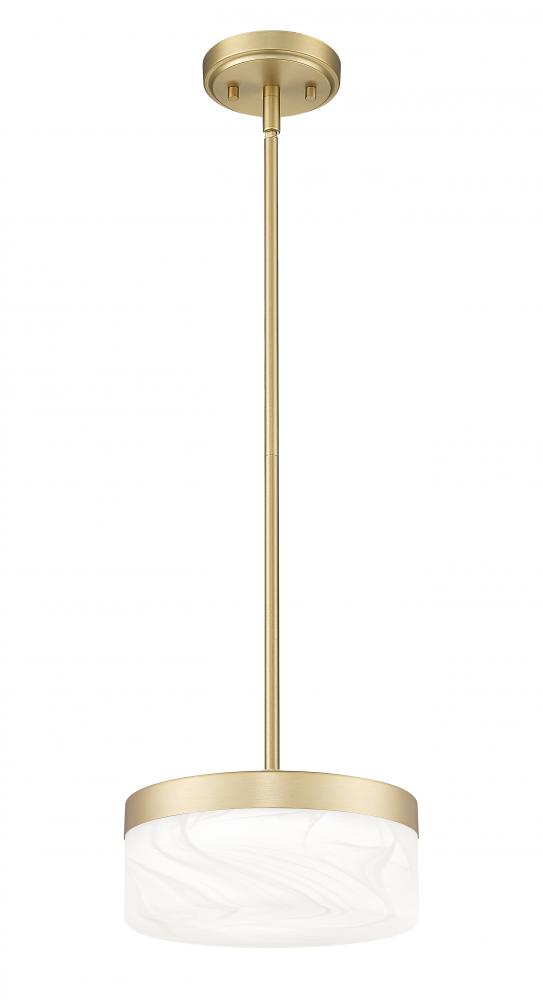 Softly gleaming, this modern gold drum LED pendant light lowers a luminous halo that flatters wood tones, stone, and upholstered seating alike. The clouded shade spreads comfortable brightness across dining tables or family rooms so everyone can see clearly without squinting into exposed bulbs. Whether it hovers over a round pedestal table or a cozy sectional, it sends a warm, gracious signal that the room is meant for gathering.