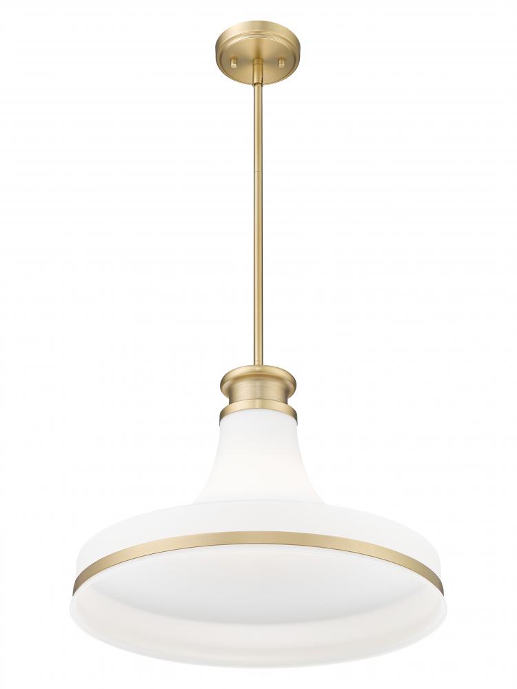 A delicate matte opal glass shade is alluringly shapely as it flatters a single-light pendant light youll love. A superb way to illuminate kitchens, dining rooms, and entryways, this light features modern gold finish steel framing and accents, distributed perfectly to complement an overall design rooted in both vintage and deco motifs. Choose from variable lighting levels to create mood illumination with this fixtures dimming functionality.