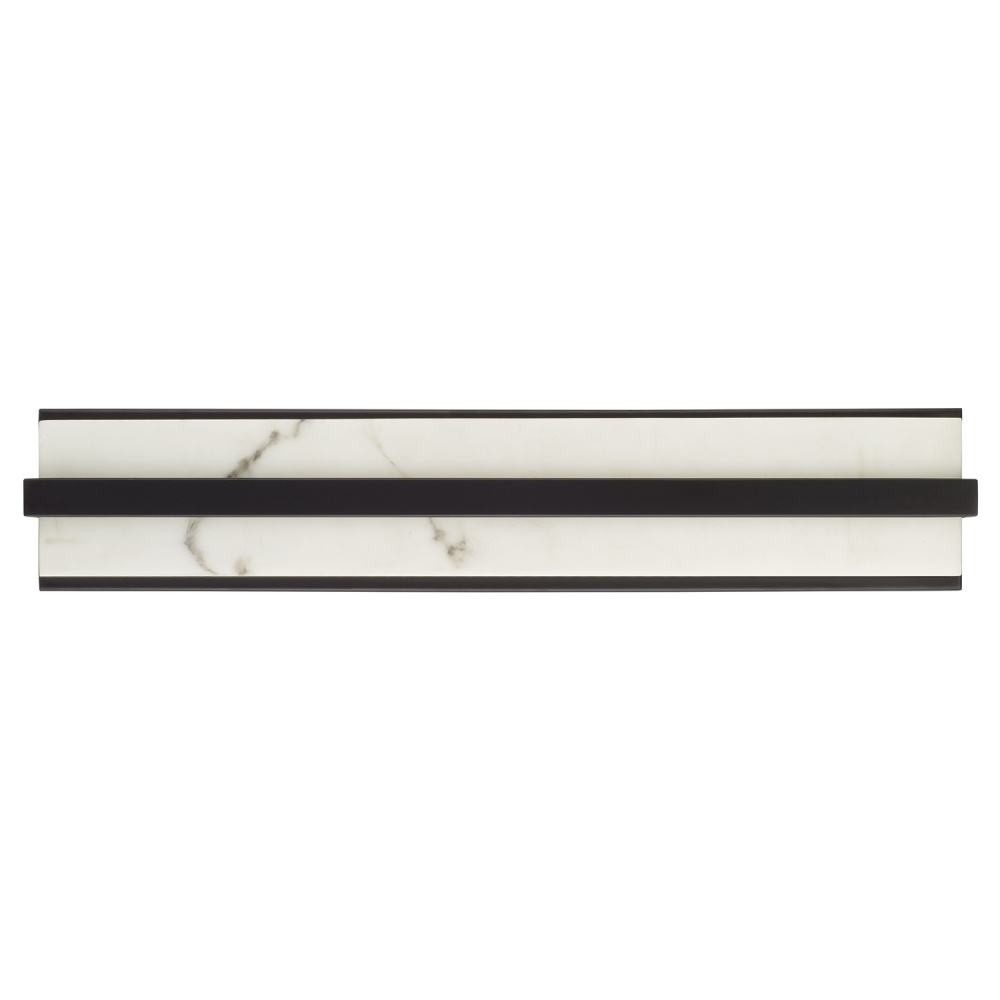 DETAILS: Streamlined and sleek, the rectangular form is crafted from Alabaster Glass with a full length Matte Black backplate and band, plus integrated LED technology.