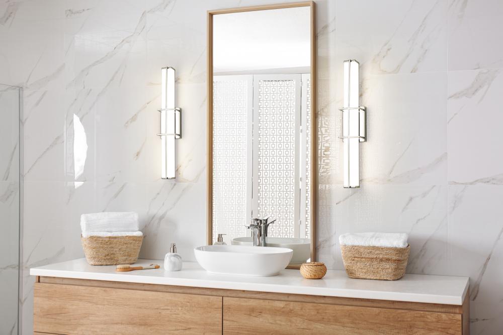 Brighten your modern vanity with the elegant simplicity of a dimmable LED bath light. Energy efficient, its got a selectable color temperature for custom illumination, and delivers a rich, stylish look with a linear bracket design in a gleaming chrome finish that pairs perfectly with a frosted diffuser to create bright, true lighting for all your daily grooming.