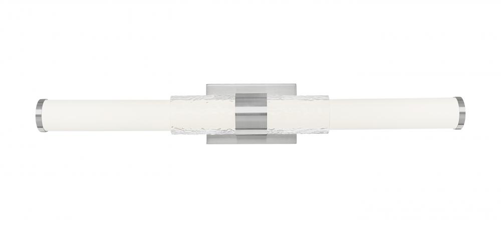 Cool brushed nickel gives this elongated vanity light its crisp, modern edge, while the wave-textured glass keeps the glow soft and inviting. It?s a seamless blend of structure and softness, made to elevate vanities with quiet confidence. Subtle luxury, perfectly proportioned.
