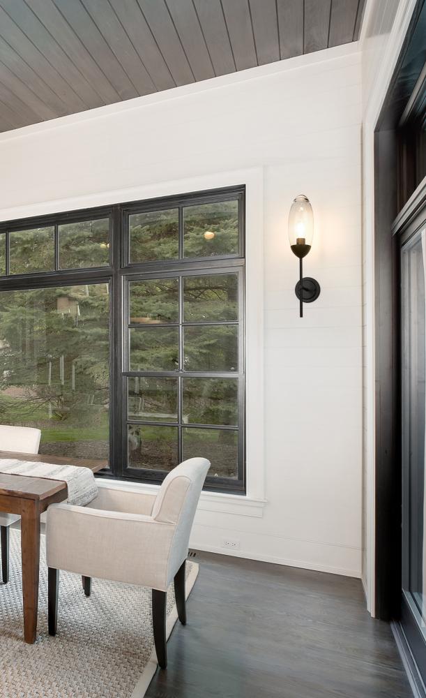 Glam style comes in a simple shape as this fixture designed for impact offers modern and traditional vibes. This one-light wall sconce from the Arden collection offers a delicate motif blending smooth matte black finish iron with a clear glass teardrop shade. A simplified silhouette feels sophisticated as it emits accent lighting in a bath en suite, hallway, or living space.