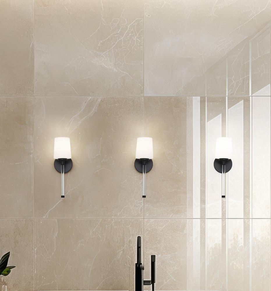 In a richly dark finish, this modern matte black one-light wall sconce brings a tailored edge that outlines pale walls and stone with a strong, confident silhouette. The slender crystal stem keeps the look light and airy, so the fixture suits everything from a compact powder room to a cozy reading corner beside the bed. Switch it on and this sculptural light paints a gentle pool of illumination that makes artwork, mirrors, and architectural details feel a little more dramatic.