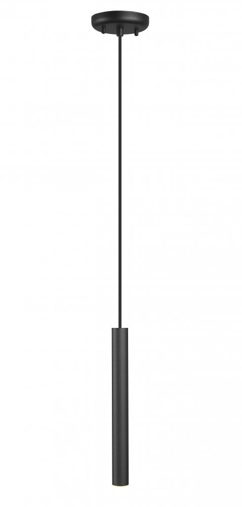 Cool matte black creates maximum contrast and depth for this modern one-light LED pendant. Its elongated cylindrical body offers pinpoint lighting, perfect over a nightstand or in series over your kitchen island. Its LED light source is integrated, ensuring energy efficiency in your home.