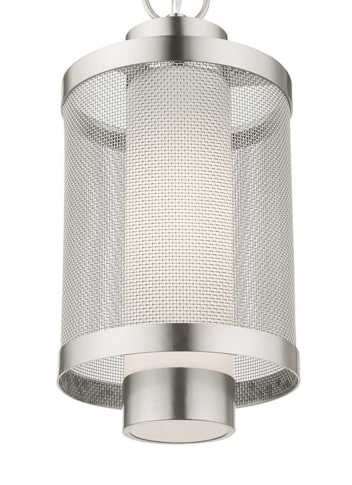 Brushed Nickel Stainless Steel Mesh with Satin Opal White