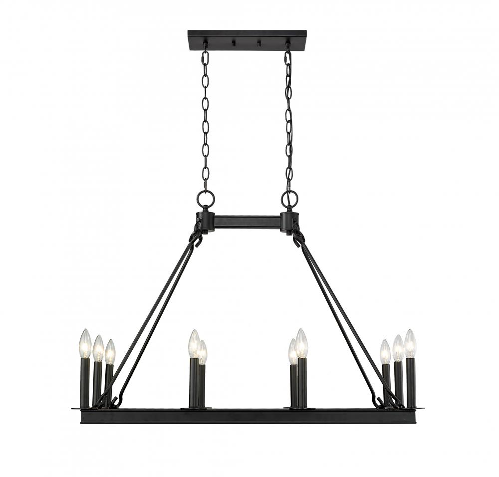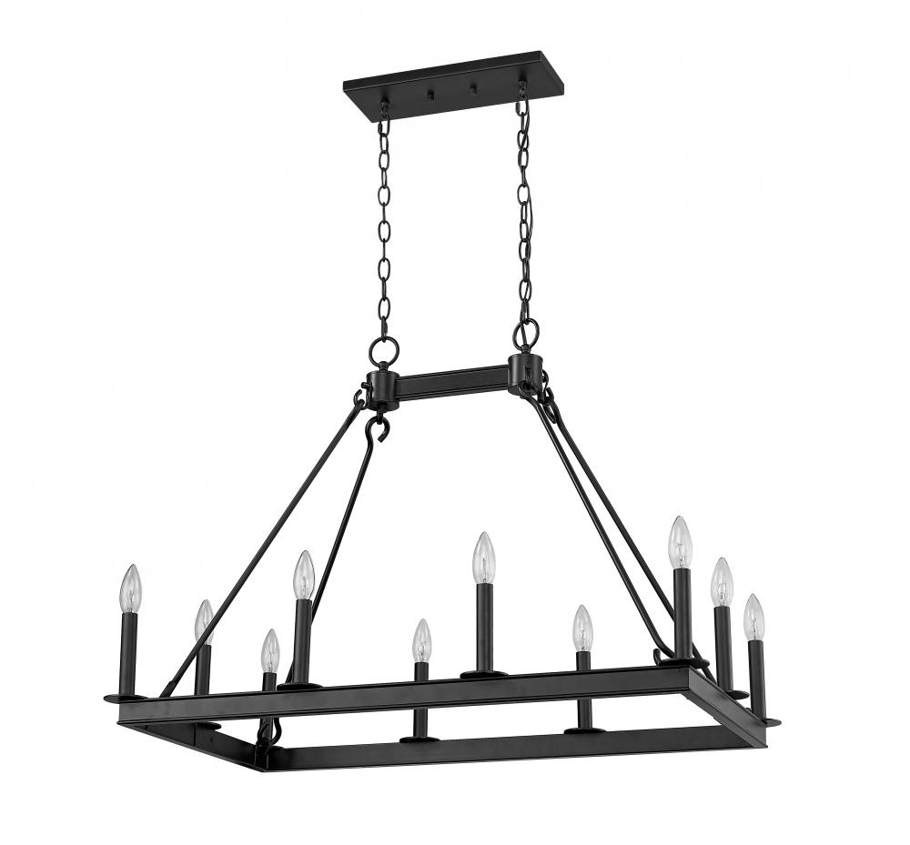 This grandiose ten-light island/billiard light is the perfect addition to your home lighting collection. Its crafted in a classic matte black finish and features the candle-inspired lights in an eye-catching rectangular design. Its the ideal light for the dining room, foyer, kitchen, or entertainment room.
