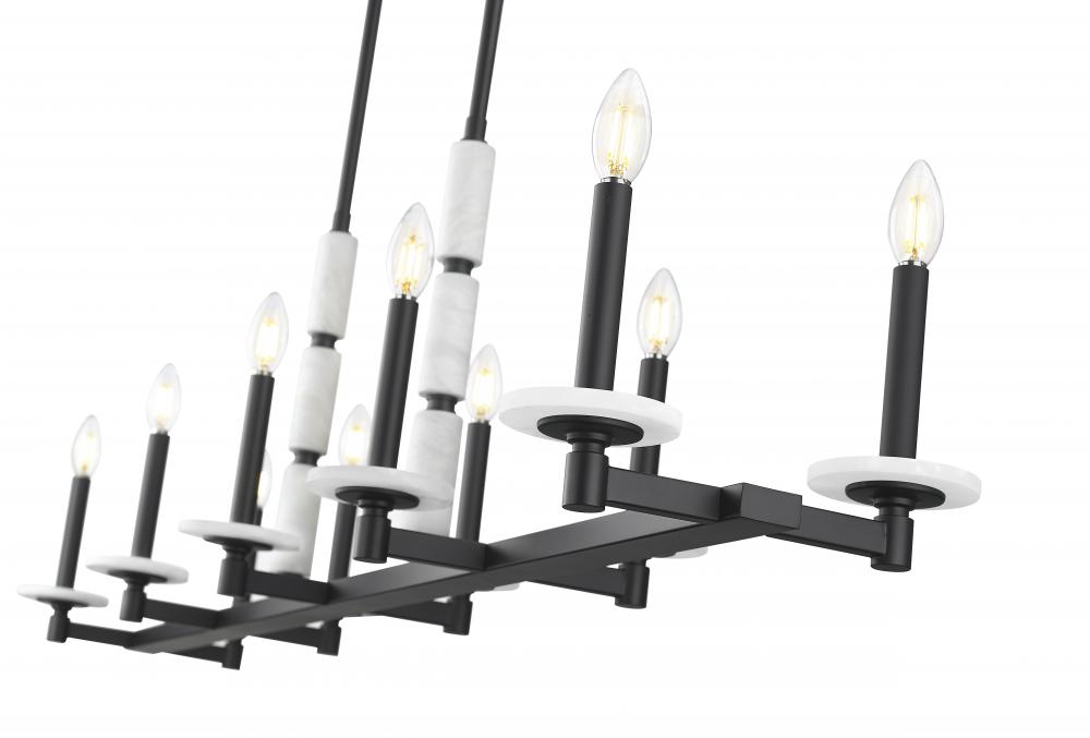 Bold and architectural, this ten-light chandelier in matte black is a dramatic balance of shadow and stone. Solid alabaster spheres float along its dark frame, glowing softly like moonlight against midnight. Designed to anchor a long dining table or kitchen island, this piece redefines elegance with presence.