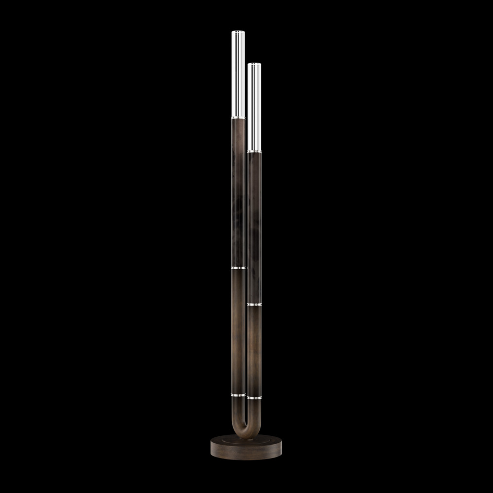 Floor lamp featuring soft curves and the inclusion of metals carefully handcrafted to transition from parchment to magnificent glass, culminating in a stunning beam of light. Available in a wide range of exquisite finishes, including our five standard finishes and our newest Soft Ombre Bronze & Soft Ombre Silver, with choice of parchment colors. Also available with no parchment.