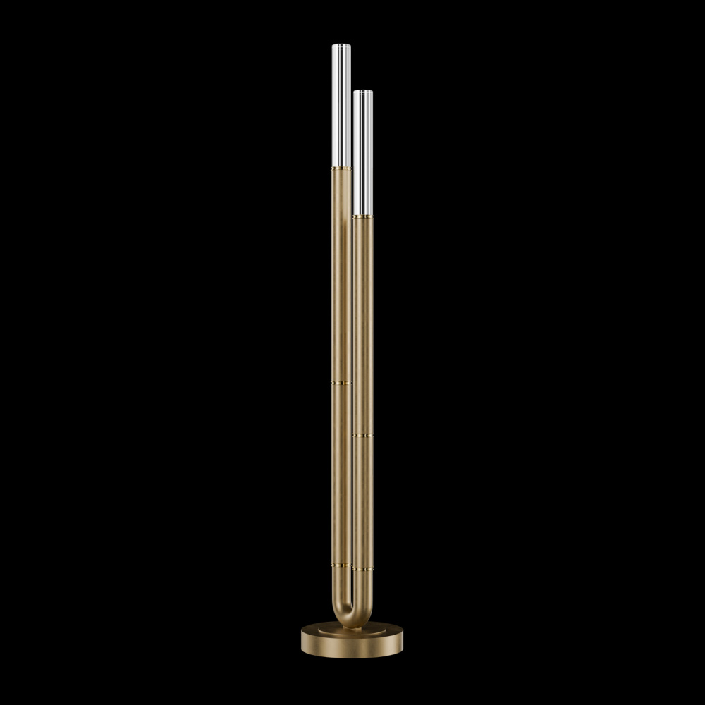 Floor lamp featuring soft curves and the inclusion of metals carefully handcrafted to transition from parchment to magnificent glass, culminating in a stunning beam of light. Available in a wide range of exquisite finishes, including our five standard finishes and our newest Soft Ombre Bronze & Soft Ombre Silver, with choice of parchment colors. Also available with no parchment.