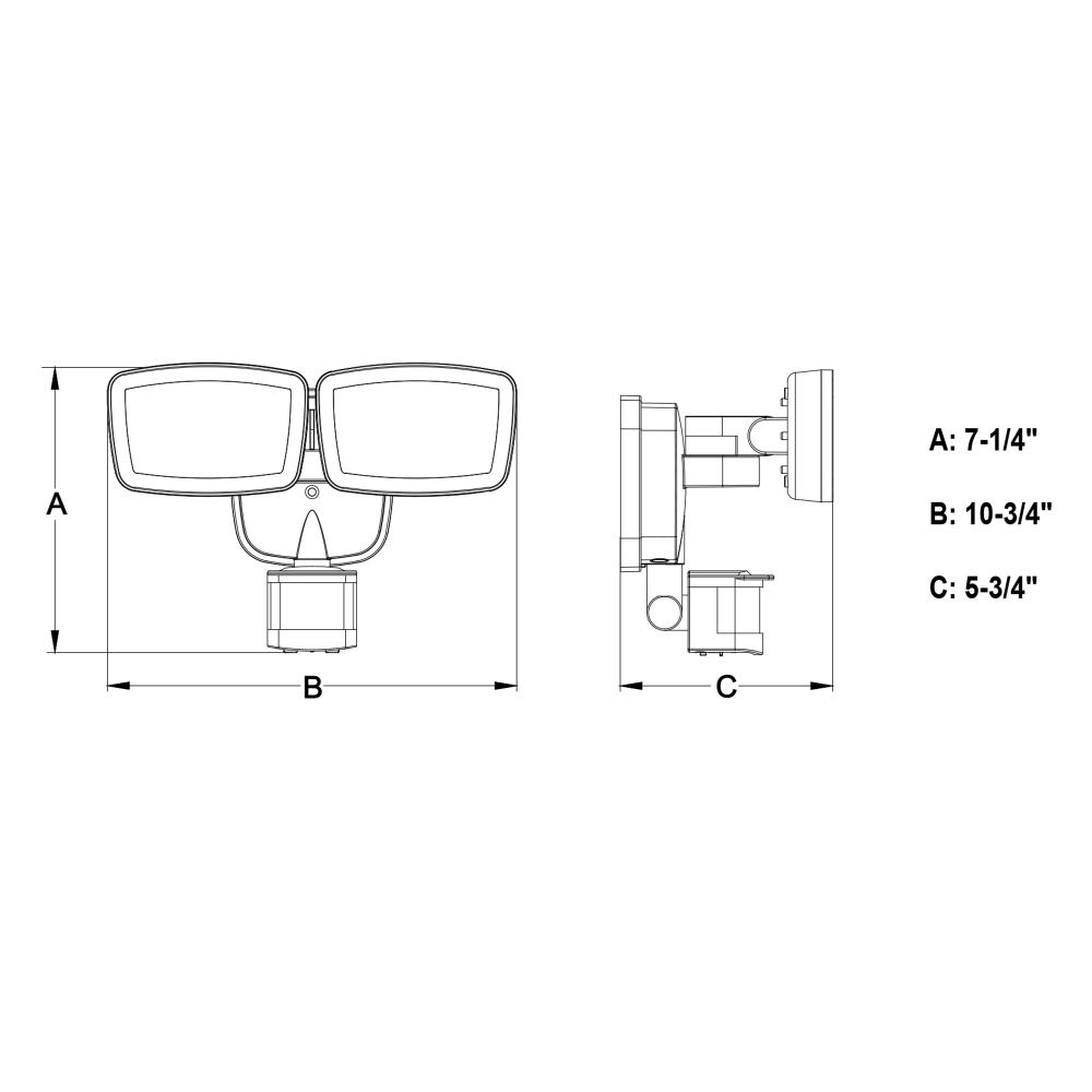 This 2-light integrated LED outdoor motion sensor security light provides low-level ambient lighting at 2700K and approximately 30% brightness throughout the night and bright 100% high level light at 5000K when motion is detected. The light heads and sensor are fully adjustable and deliver 2200 lumens to keep your home’s exterior brighter at dusk, dimmer at night, and instantly bright when motion is detected. Customize your lighting options with 4 modes of operation plus adjustable motion sensor sensitivity. Suitable for wall or eave mounting with a wide detection area of 180 degrees and 70 feet. This Dualux security flood light expands the functionality, safety, and security of your home’s outdoor spaces with bright, reliable light when and where it is needed most.