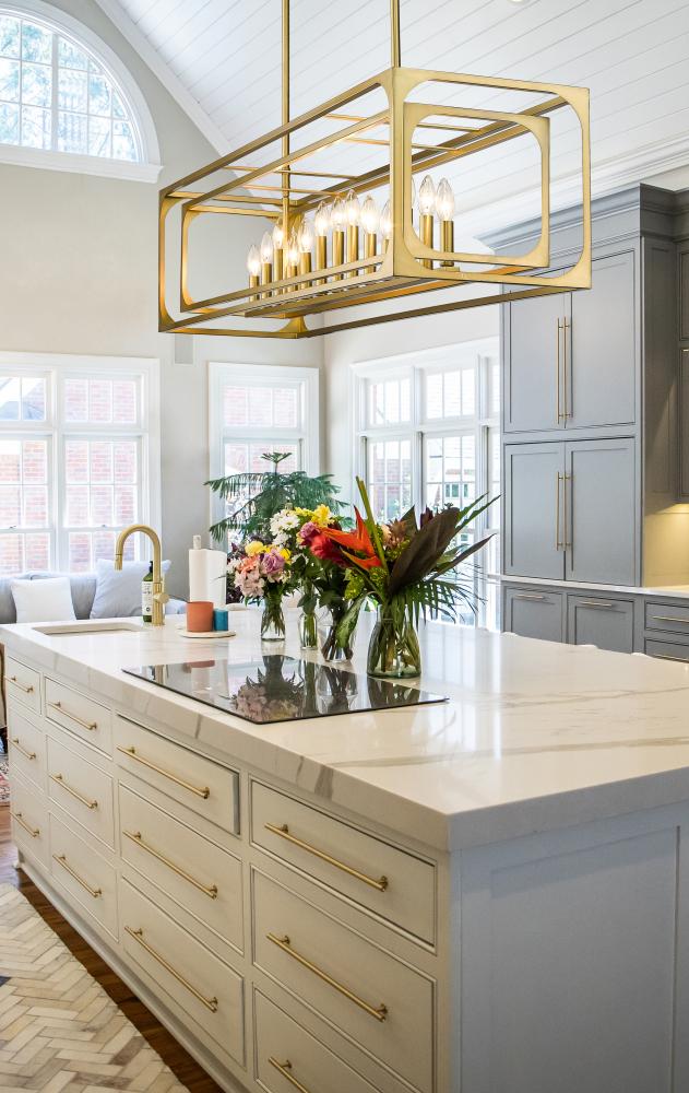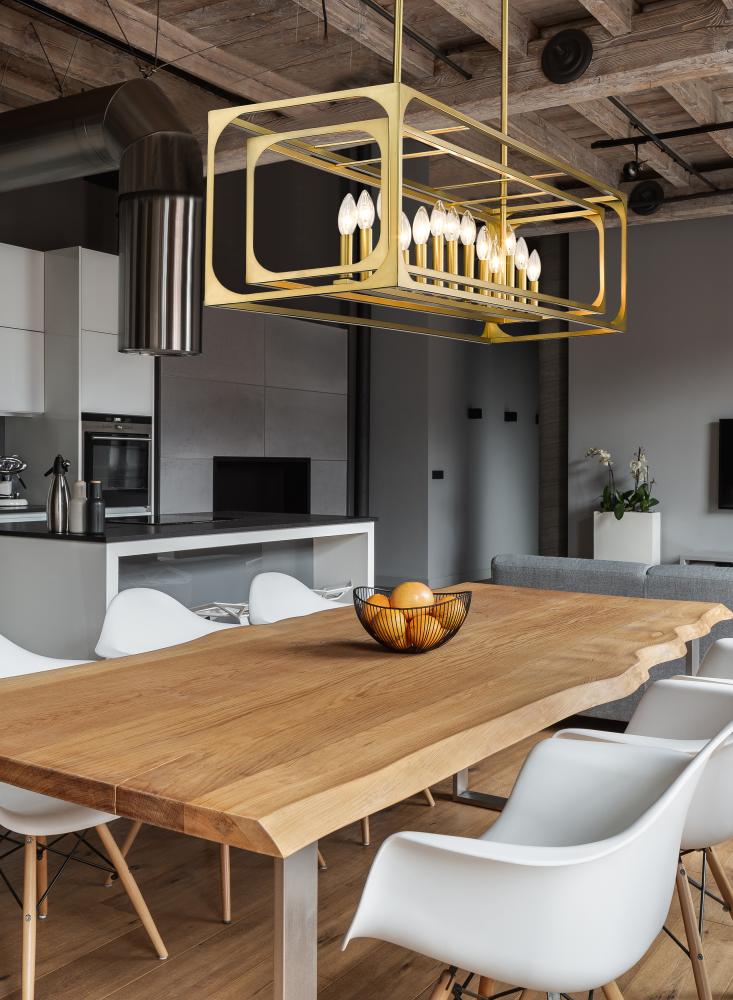 Complete the custom look of a modern or traditional space with a fixture that puts a signature design stamp in a kitchen or bar setting. Starting with linear elements and an orderly aesthetic, the Easton thirteen-light island light sneaks in a romantic theme with charming candelabra bulb mounts set in a graduated arrangement, centered in full view thanks to a dual-layered openwork rubbed brass finish metal frame. Symmetry and minimalism reflect a sought-after effect with a gleaming quality and limitless personality.