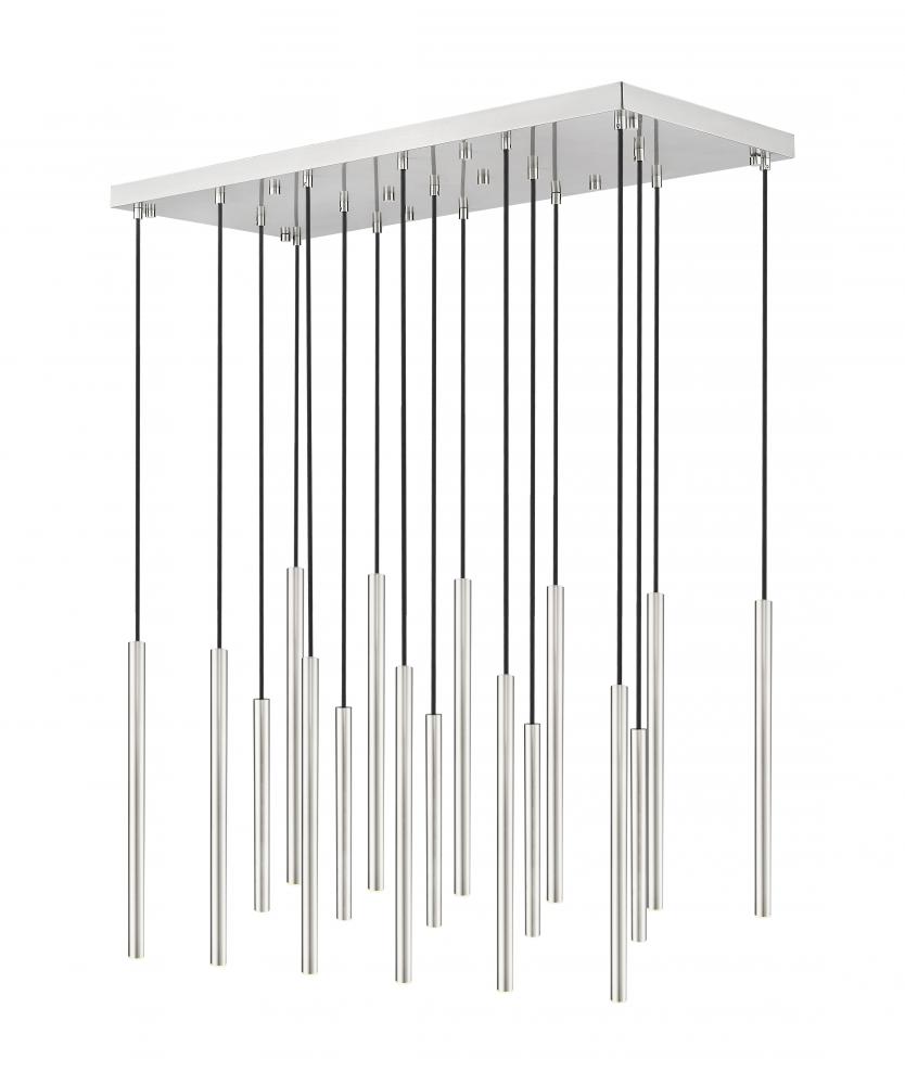 Capture a sophisticated ambiance with this modern 17-light chandelier. Its linear design is ideal for kitchen islands, dining tables and other elongated spaces, casting bright, dimmable illumination with integrated LED lights. The fixture shows off a sleek brushed nickel finish, ensuring compatibility with a wide range of decor styles.