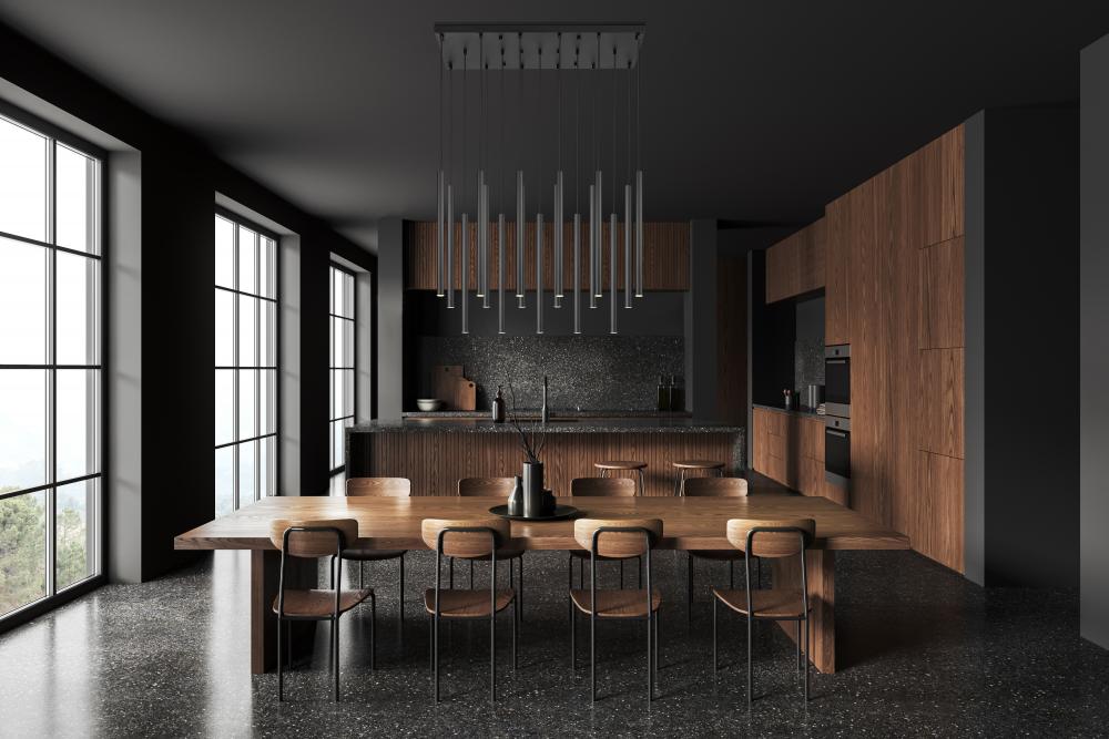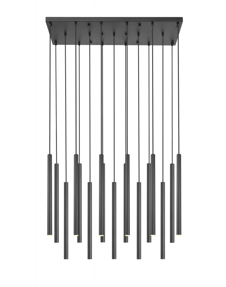 Encourage sophistication in a modern space with this contemporary 17-light chandelier with a linear profile. Great over a dining table, it features a matte black finish with matching black braided cords that suspend slim lights, each with integrated LEDs that are dimmable and energy efficient for excellent performance in any room.
